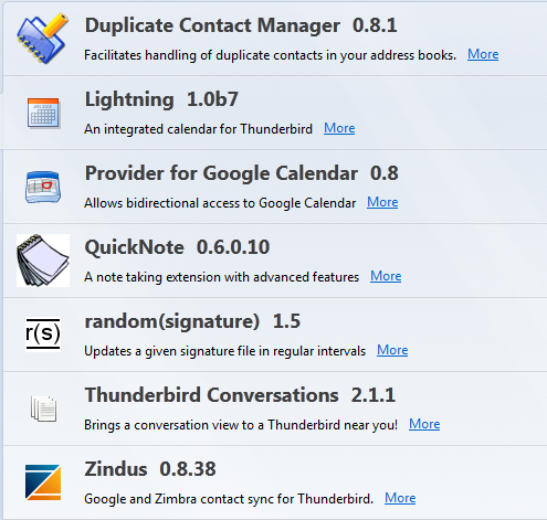 In my last post about comparing Outlook w/Thunderbird, I noted that one of the edges Thunderbird has is the huge extensions library that’s available online. Of course with the number comes the challenge of choosing which ones you should use. Based on my personal usage, I’ve got a few extensions that work well for me. Here’s the list and I’ll explain a bit about what each one does.